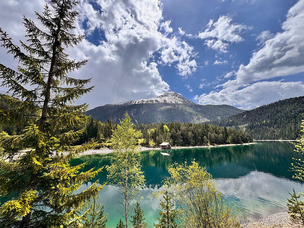 Na het ontbijt vertrekken we naar een nieuwe locatie. In Oostenrijk liggen veel privémeren; op veel meren mag je niet suppen, op sommigen alleen met toestemming. Bij dit meer is het de eigenaar van een chique hotel; we betalen de verplichte fee en krijgen een toegangsbewijs om het meer op te gaan. De opbrengst gaat naar het onderhoud van het nationaal park.