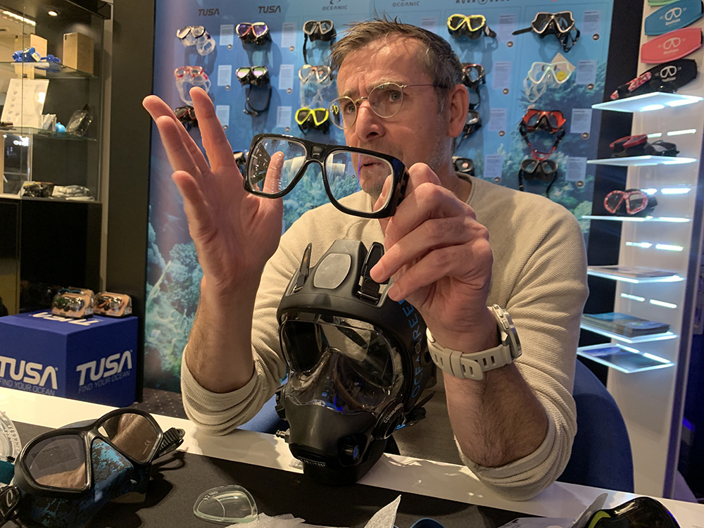 Verder gaat het niet alleen om de lenzen, maar speelt ook het masker een belangrijke rol. Sommige lenzen, (brilrecepten) zoals bij voorbeeld de min-glazen, hoge sterktes of een kleine pupilafstand werken beter samen met maskers met kleine glazen. Andere lenzen zijn mogelijk wat minder kritisch. De afstand van het gezicht tot het glas van het masker is ook belangrijk voor de optiek, maar ook voor het beslaan van het glas. De kunst van dit vak is natuurlijk met de kennis van het duiken, het beschikbare duikmateriaal en de optische mogelijkheden de ideale oplossing voor elke duiker te vinden. DiveVision is momenteel het enige bedrijf in de Benelux dat zo gespecialiseerd is dat het lenzen en de maskers op maat kan leveren.
